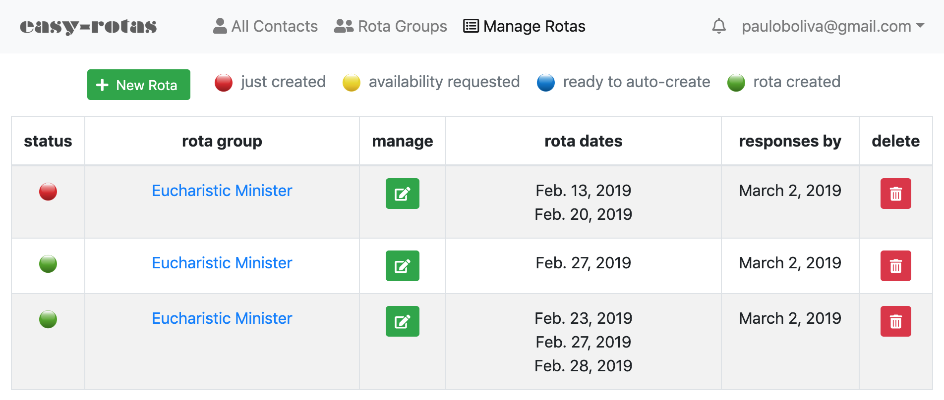 The app allows for rota organisers to set up rota groups, and then collect availability from participants before an auto-generated rota is created and shared.